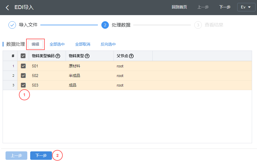 1、勾选需要导入的数据。如果数据需要调整,可以点击编辑按钮,直接在表格中对数据进行编辑。